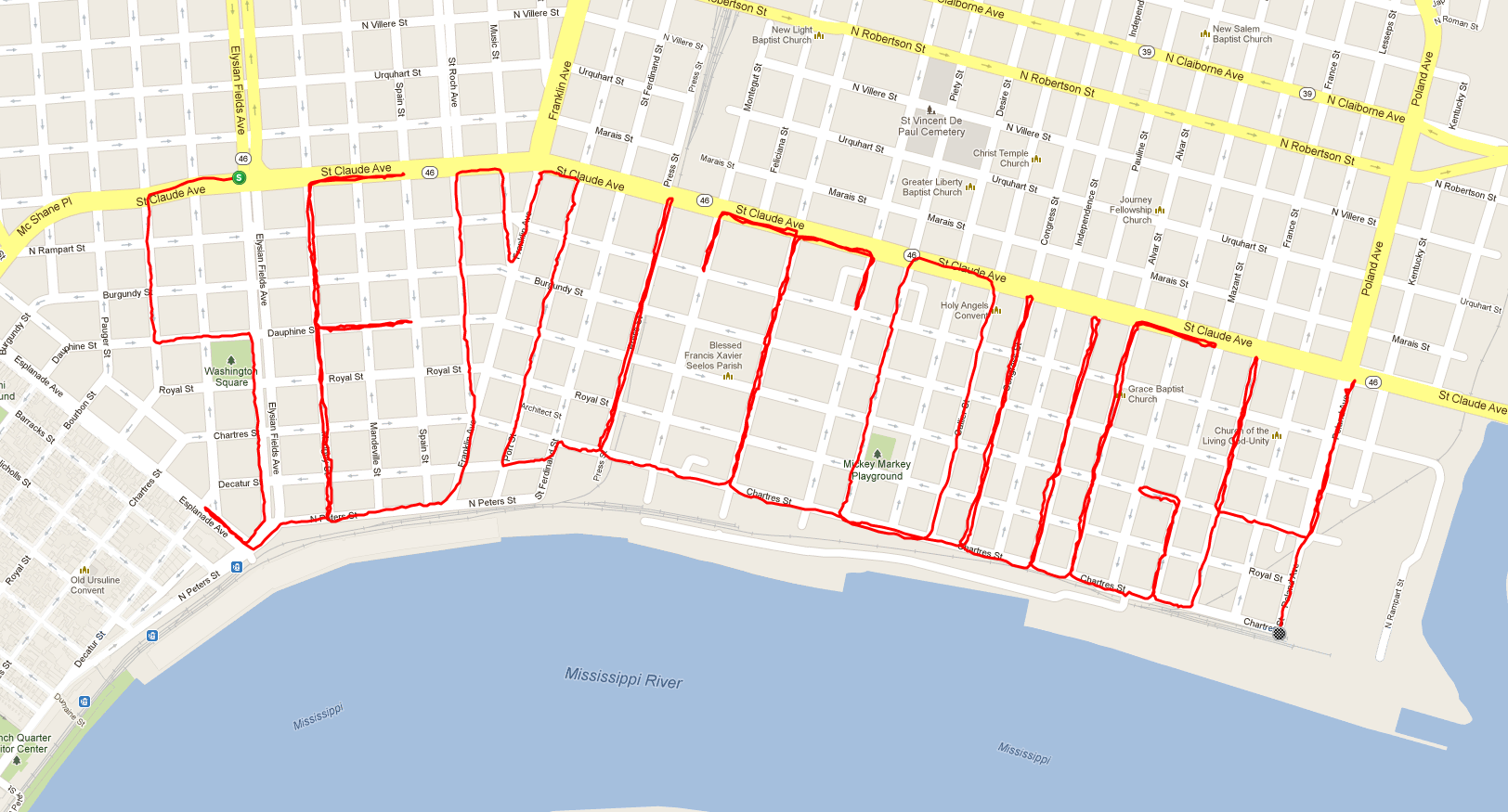 I was a bit perplexed by this odd looking ride (and more perplexed by it’s name) done by fellow NOLA cyclist Matt Erchull. After cocking my head, I realized it read, “WeMoRi”, standing for “Wednesday Morning Ride”. I’ve never been on this ride, but I hear it’s very early and very fast. (Sounds like it needs a Yeah You Ride “Ride Profile”, I just hope I can keep up). This is not the WeMoRI route, but Matt representing WeMoRi’s claim on the streets of NOLA. As a screen grab of Matt’s ride was soon posted in the Semi-Tough Cycling Club’s Facebook group, I realized the gauntlet was thrown and I needed to answer back.